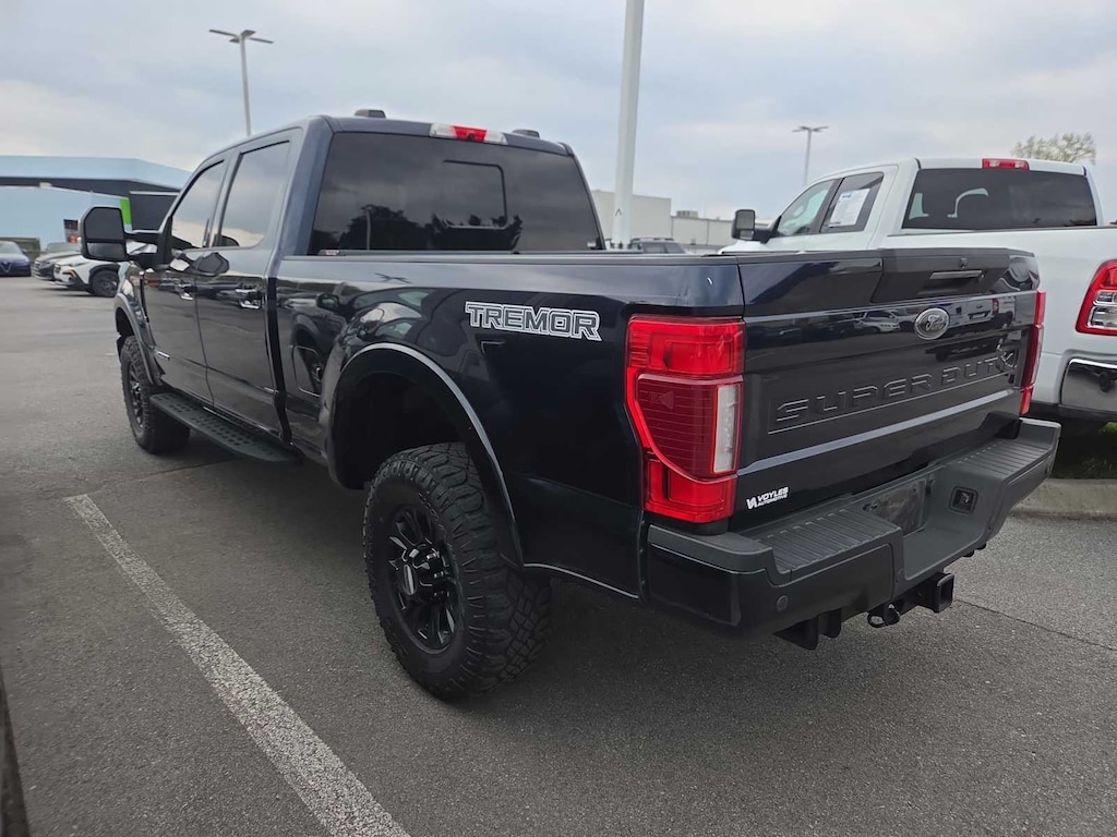 ENGINE: 6.7L 4V OHV POWER STROKE V8 TURBO DIESEL B20 manual push-button engine-exhaust braking and intelligent oil-life monitor, 240 Amp Alternator, 34 Gallon Fuel Tank, 3.31 Axle Ratio, Dual 78-AH 750 CCA Batteries, TREMOR OFF-ROAD PACKAGE unique front springs - ride height increase, rear electronic locking differential, front limited slip differential, performance front and rear shock absorbers, unique front air dams w/approach angle improvement, transfer case and axle water fording vent tubes, rock crawl mode and trail control mode, Tremor Off-Road Decal, Transfer Case & Fuel Tank Skid Plates, Tires: LT285/75R18E BSW Automatic Transmission, Off-road, LT285/75R18E BSW Spare Tire, Textured Matte Finish Off-Road Running Boards, Conventional Road Spare Wheel, Wheels: 18 Low-Gloss Black Painted Aluminum, Body-Color Wheellip Moldings, Lane Departure Warning, BLACK APPEARANCE PACKAGE front and rear black Ford oval logos and ebony black fender vent surround, Black Out Surrounds LED Only Headlamps, Rear Wheel Well Liners (Pre-Installed), Ebony Black Painted Front Grille Bars, Ebony Black Painted Mirror Caps, Tough Bed Spray-In Bedliner, tailgate-guard, black box bed tie-down hooks and black bed attachment bolts, Body-Color Front & Rear Bumpers, Wheels: 20 High-Gloss Black Premium Painted Alum, Tires: LT275/65Rx20E OWL Automatic Transmission (4), Spare may not be the same as road tire, 6 Ebony Black Angular Running Boards, LARIAT ULTIMATE PACKAGE Power Heated/Ventilated Driver Seat w/Memory, PowerScope Trailer Tow Mirrors w/Memory, EASY ENTRY®/Exit Memory Drivers Seat Feature, Tailgate Step & Handle, LED Box Lighting, LED Center High-Mounted Stop Lamp (CHMSL), Intelligent Access w/Push-Button Start, Power Heated/Ventilated Passenger Seat, Memory Power-Adjustable Pedals, Remote Start System, Ambient Lighting - Fixed Color, Power Telescoping/Tilt Steering Wheel/Column, memory and audio controls, Remote Tailgate Release, PRO TRAILER BACKUP ASSIST - HIGH CAPACITY Note: Salespersons Portfolio or Trailer Towing Guide should be consulted for specific trailer towing or camper limits and corresponding required equipment, axle ratios and model availability, See Supplemental Reference for vehicle height consideration, Ultimate Trailer Tow Camera System, rear view camera, 360 degree camera system, rear CHMSL camera, trailer reverse guidance and LED center high-mounted stop lamp, High Capacity Trailer Tow Package, increased GCW from 23,500 lbs, to 30,000 lbs and upgraded axle, Note: Salespersons Portfolio or Trailer Towing Guide should be consulted for specific trailer towing or camper limits and corresponding required equipment, axle ratios and model availability, See Supplemental Reference for vehicle height, TRANSMISSION: TORQSHIFT 10-SPEED AUTOMATIC SelectShift and selectable drive modes: normal, tow/haul, eco, deep sand/snow and slippery.